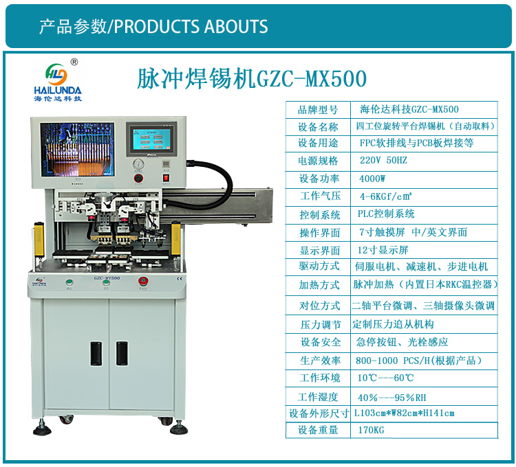 工作原理是通過(guò)熱壓頭上加載的脈沖電流來(lái)達(dá)到瞬間升溫,使焊錫以完美的溫度、時(shí)間及壓力來(lái)與排線焊接在一起。